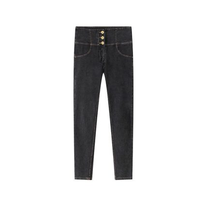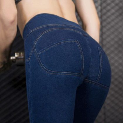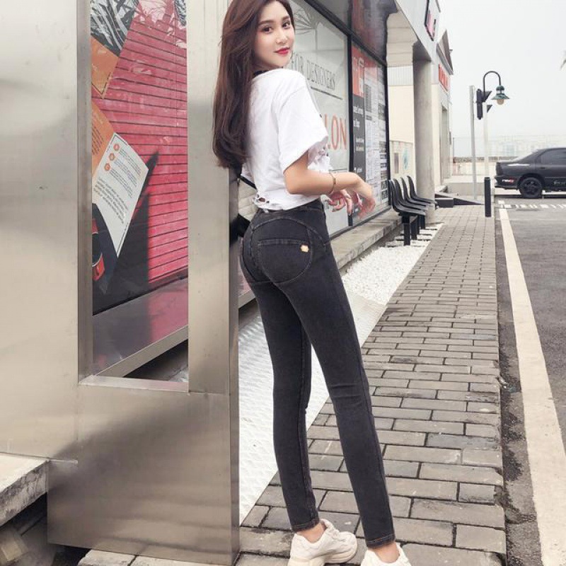 Non-zipper jeans women’s elastic sexy low waist hip pants Peach Hip pants small cropped fitness pants