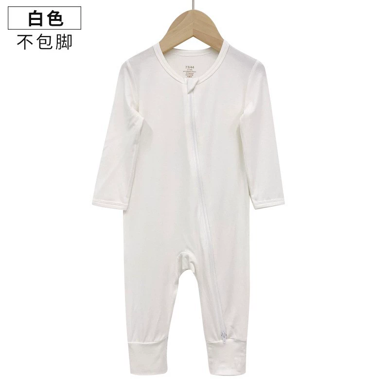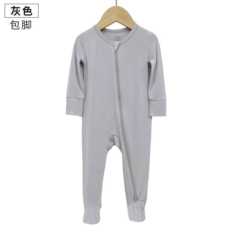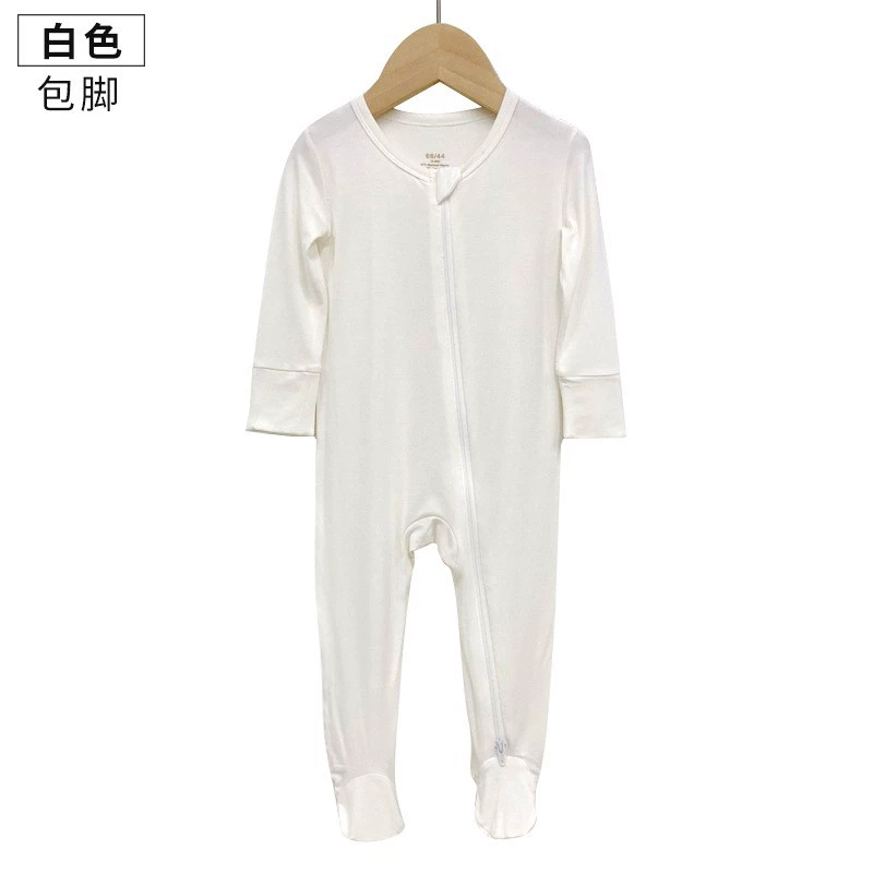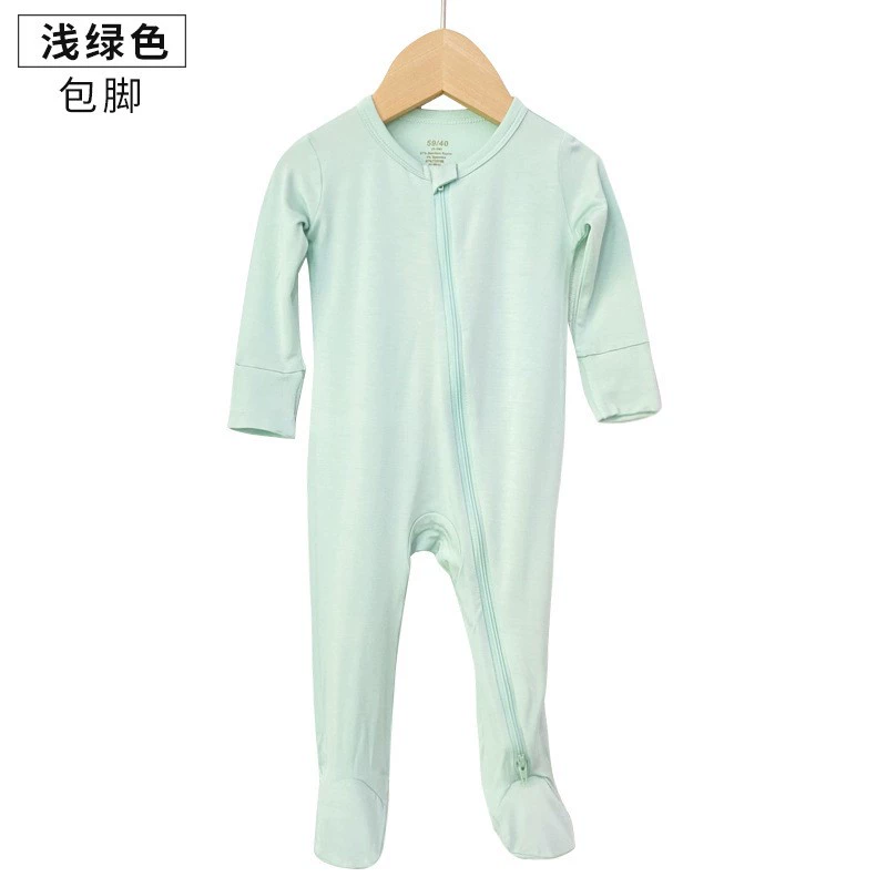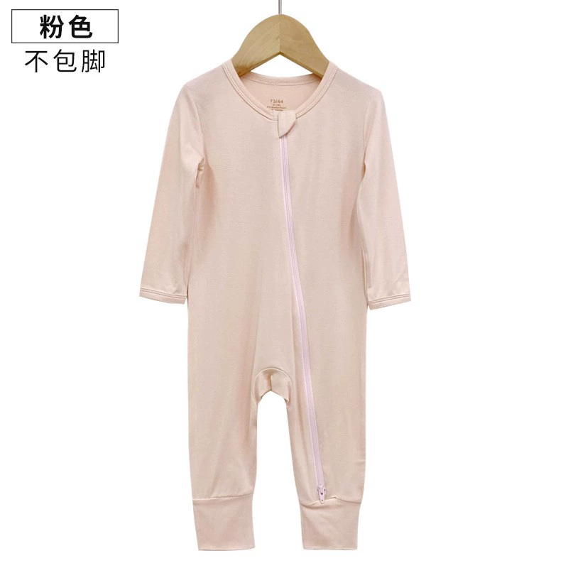 Nordic baby spring and summer bamboo cotton jumpsuit newborn baby long-sleeved thin ins hoodie two-way zipper crawler suit