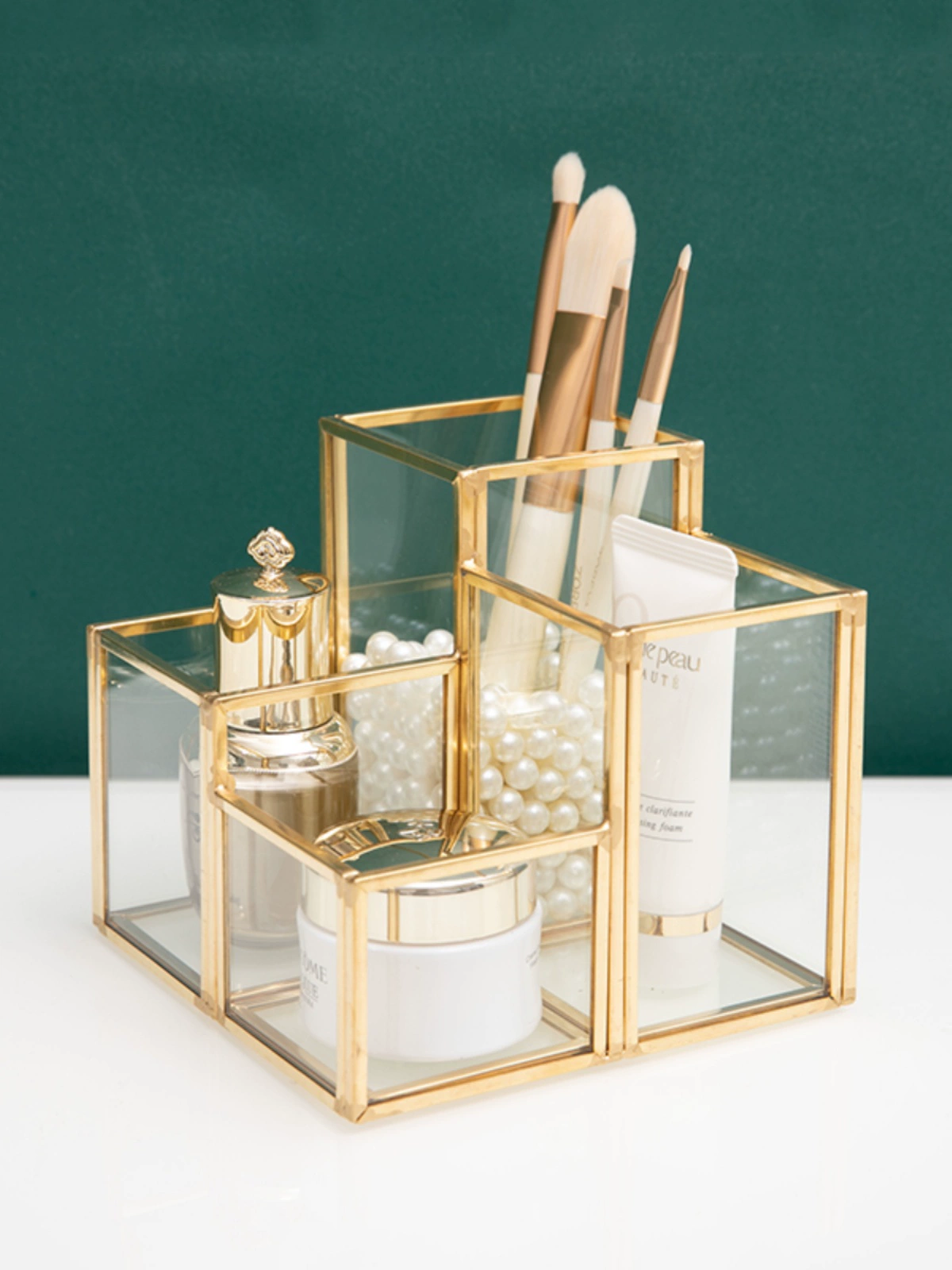 Nordic bedroom desktop makeup brush bucket glass beauty brush storage box makeup eyebrow pencil eye shadow brush pearl storage box