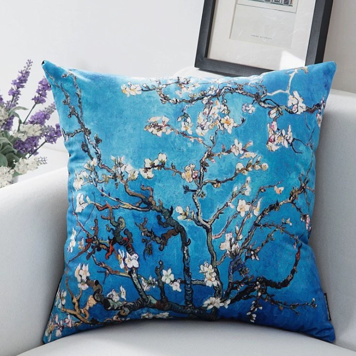 Nordic Creative Art Pillow Cover Van Gogh Apricot Blossom Starry Night Monet Water Lily Short Plush Fabric Cushion Sofa Cushion Cover