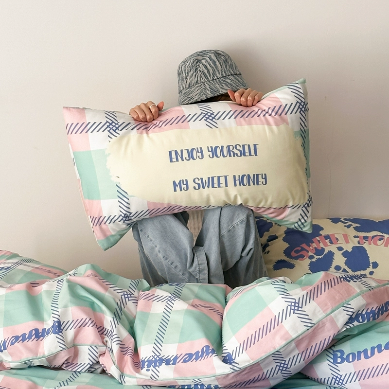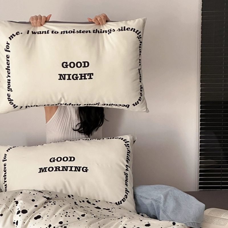 Nordic ins style personalized printed cotton couple pillowcase single home student pillowcase 48×74 pair shot 2