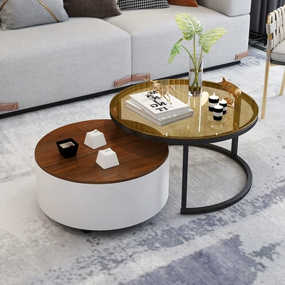 | nameOriginal | Nordic light luxury coffee table modern simple internet celebrity glass coffee table table living room home small apartment round combination coffee table |