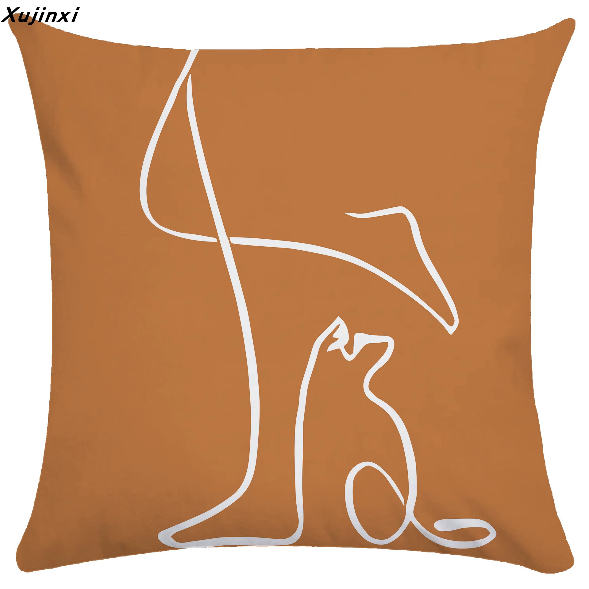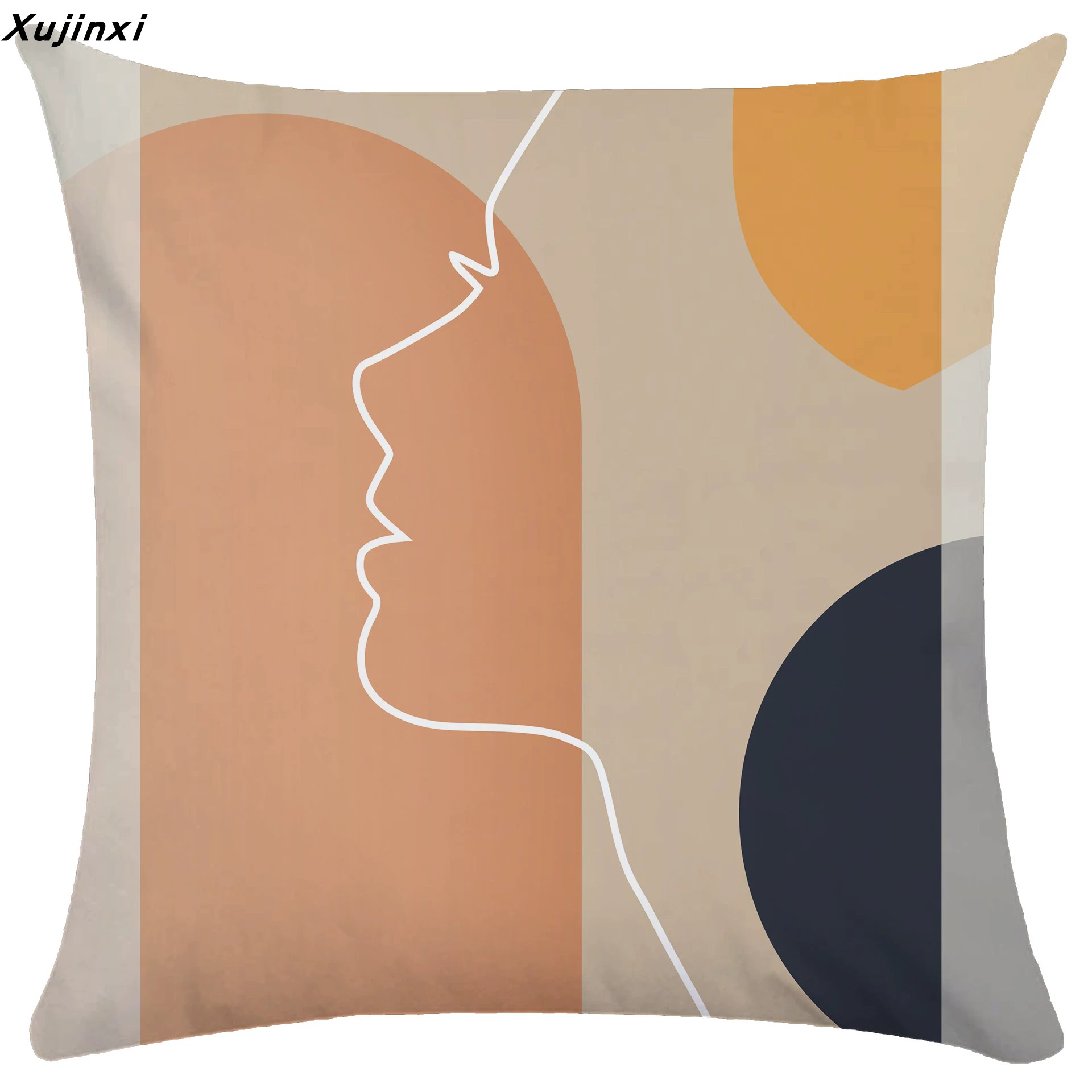 | nameOriginal | Nordic light luxury line geometric pillow simple orange floral pillowcase gray sofa Guchen B&B cat cushion |