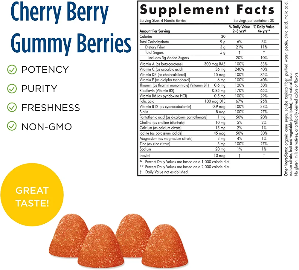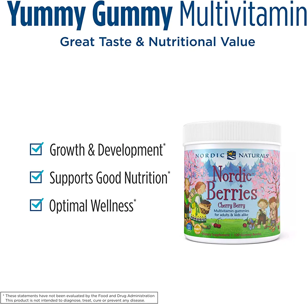 | nameOriginal | Nordic Naturals Nordic Berries, Cherry Berry – 120 Gummy Berries – Great-Tasting Multivitamin for Ages 2+ – Growth, Development, Optimal Wellness – Non-GMO, Vegetarian – 30 Servings |