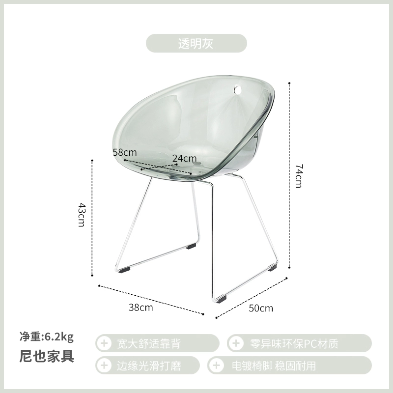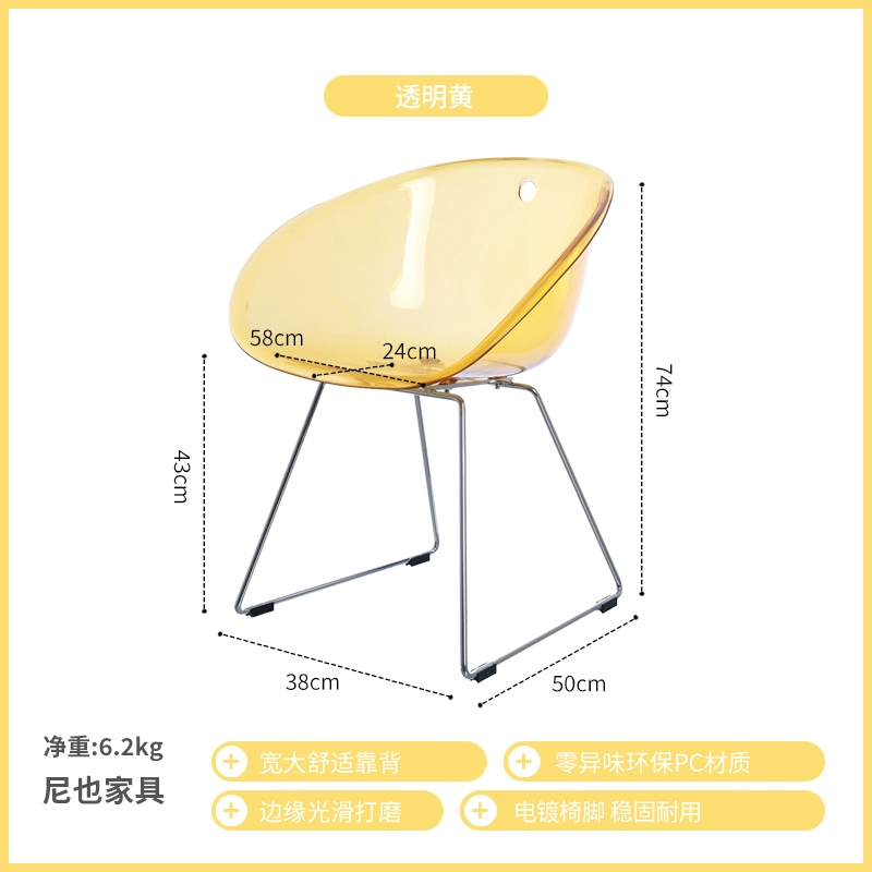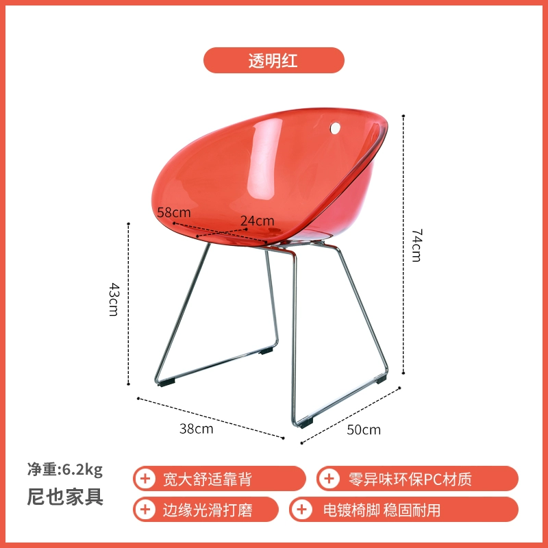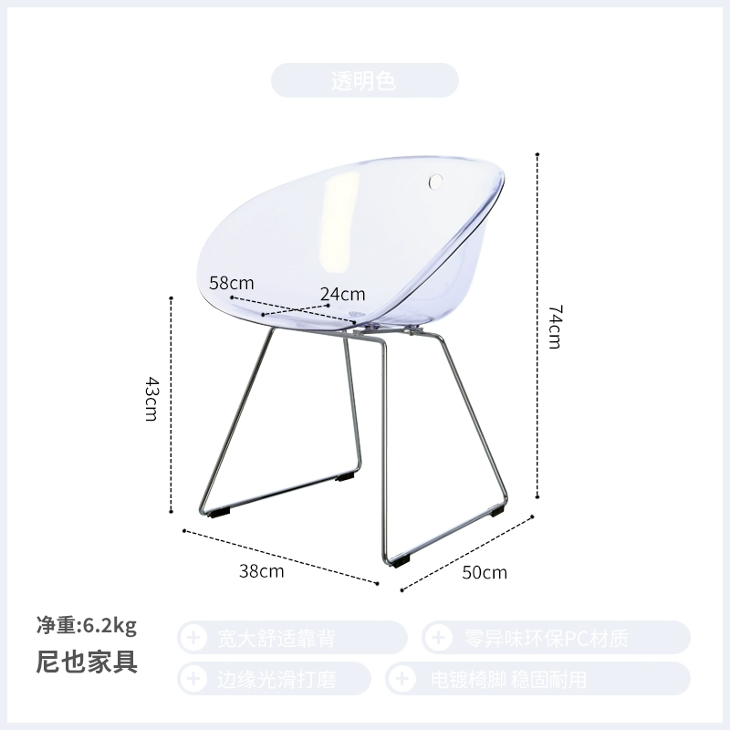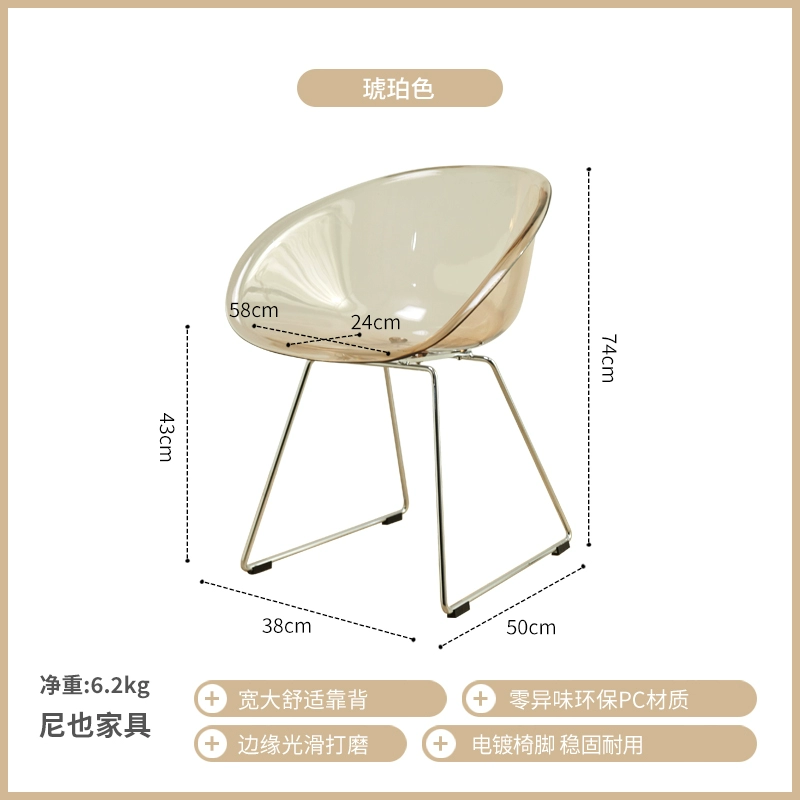 | nameOriginal | Nordic Simple Fashion Crystal Creative Chair Transparent PC Acrylic Backrest Negotiation Internet Celebrity Plastic Leisure Dining Chair |