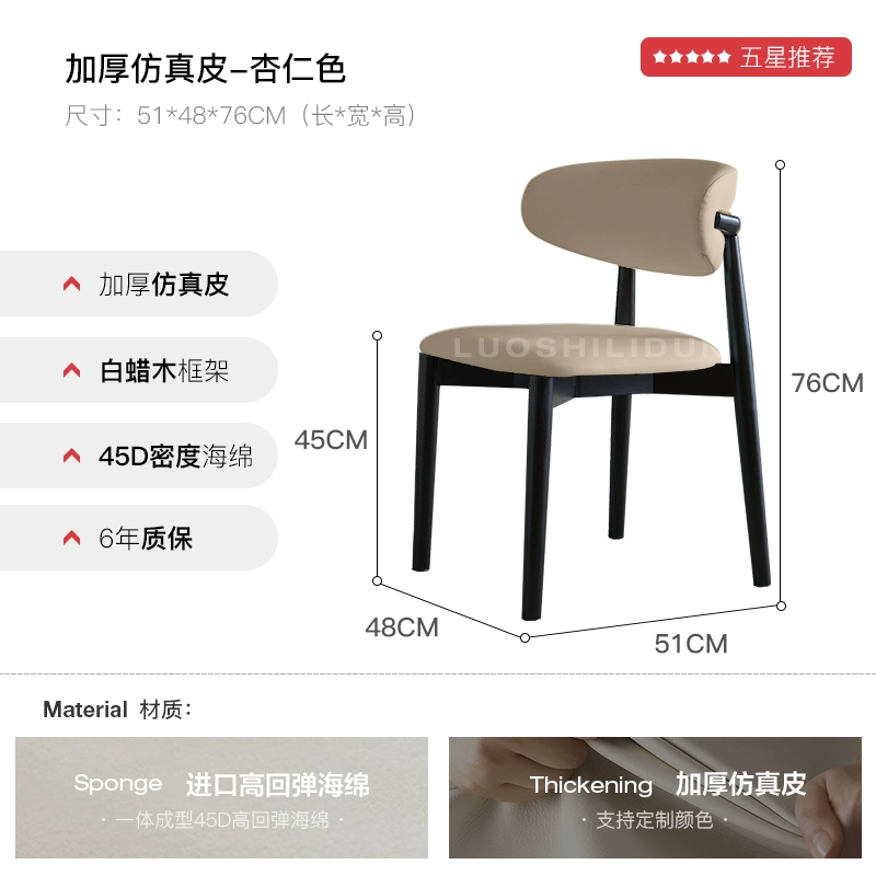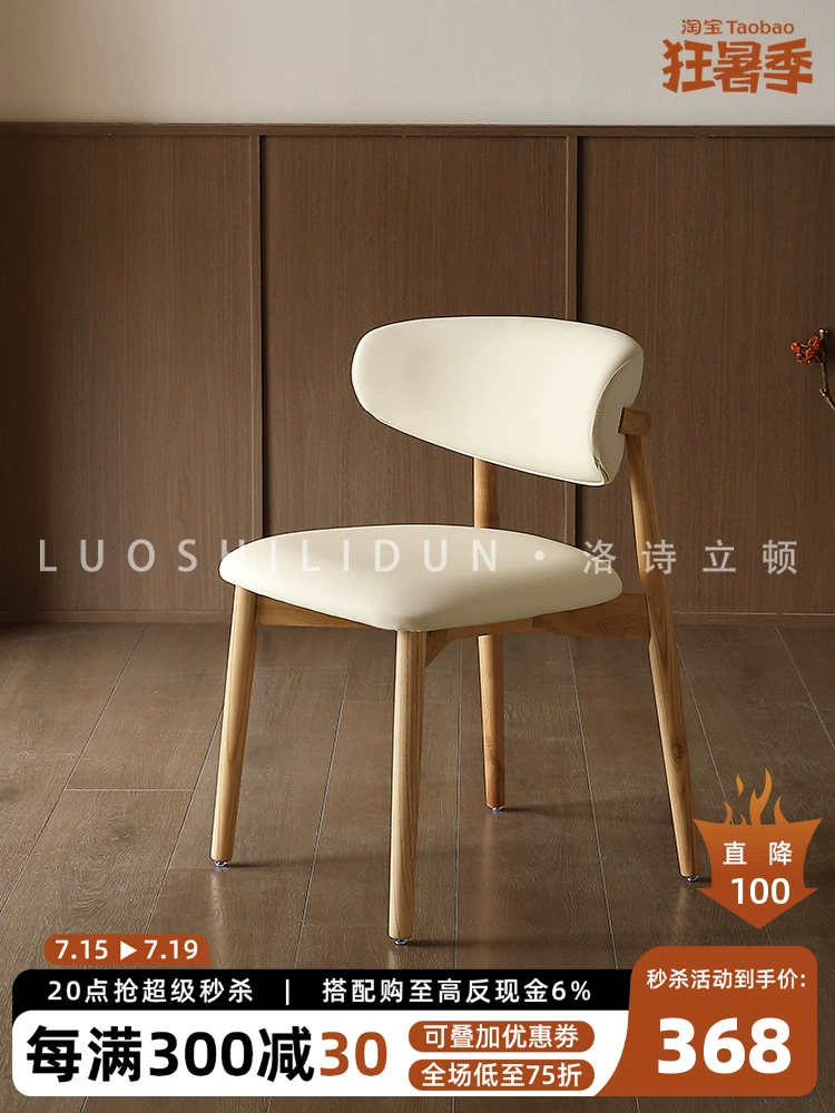 | nameOriginal | Nordic solid wood dining chair home light luxury modern designer dining table chair French medieval log desk back stool |