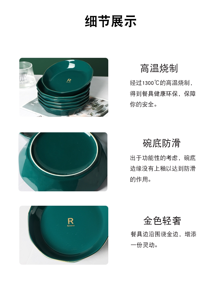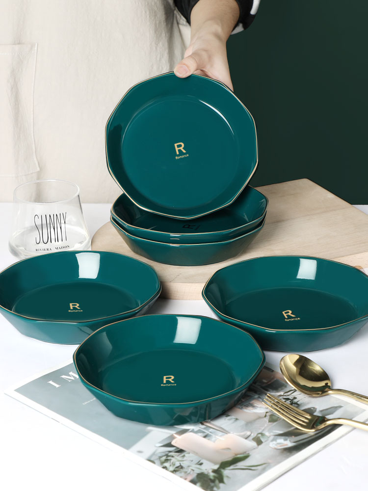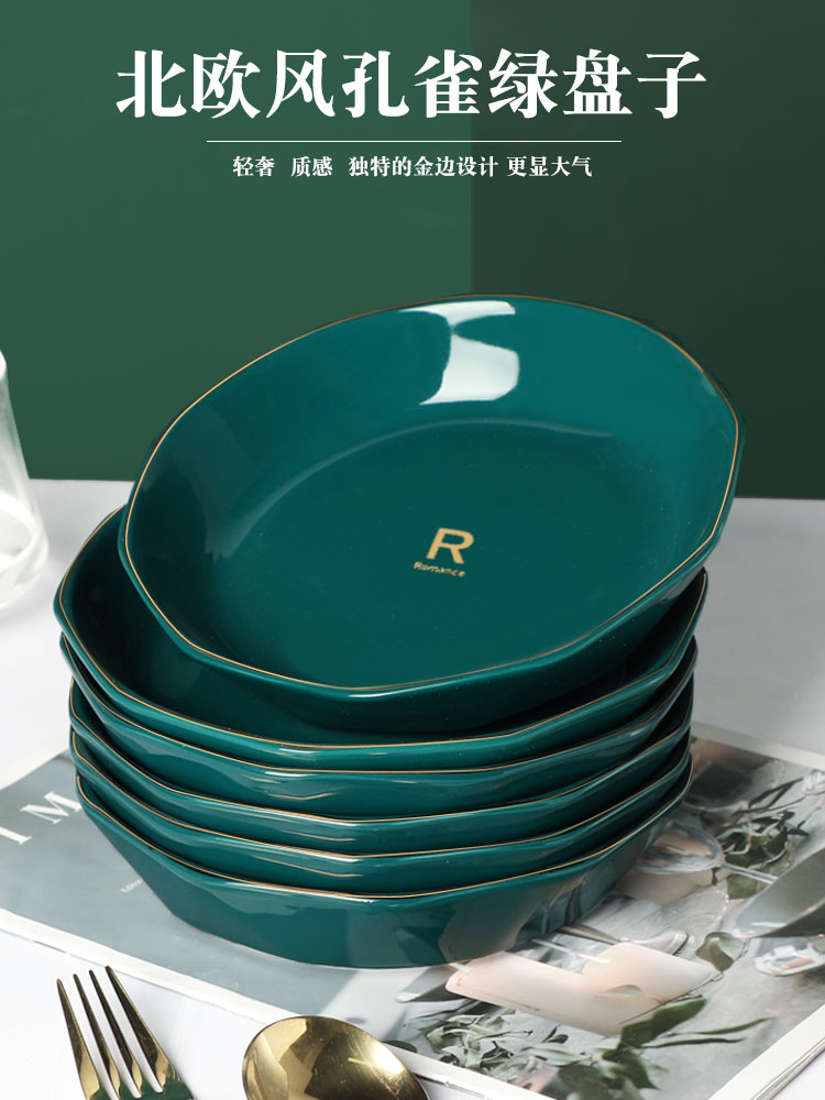Nordic Style Light Luxury Vintage Ceramic Plate Dish Dish Household Tableware suit Dark Green Phnzon Plate Creative Internet Celebrity Dish