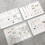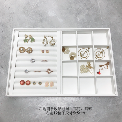 | nameOriginal | Nordic white PU leather jewelry storage tray grid tabletop ring earrings necklace props display stand |