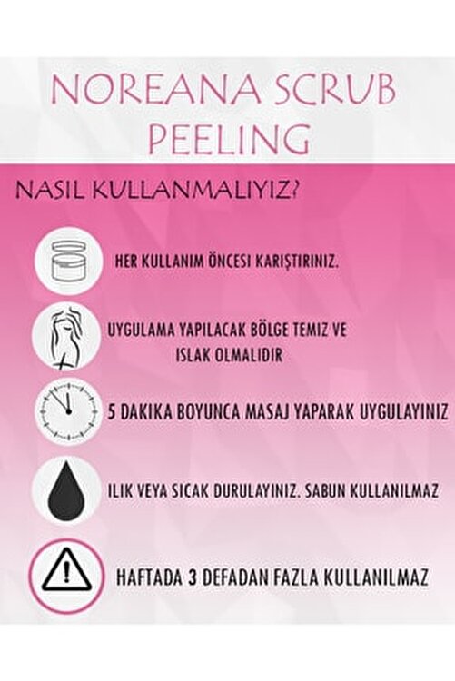 Noreana Scrub Peeling helps your skin that you want to regenerate and strengthen by applying regularly and correctly to become more resistant to problems such as CELLULITE, CRACK, DARK STAIN, SUNK, BRISTLE ROTATION and STRAWBERY LEG APPEARANCE