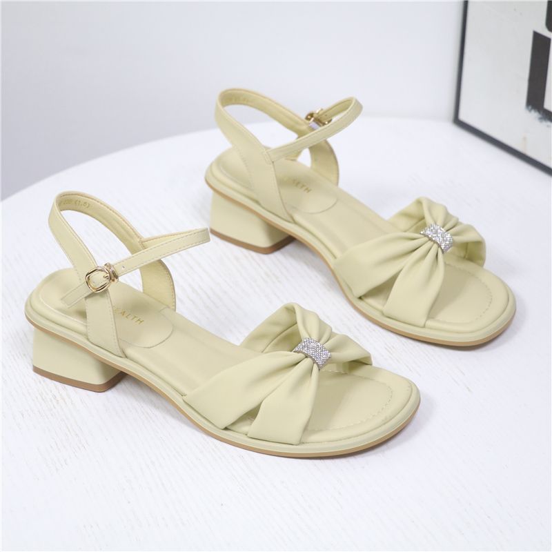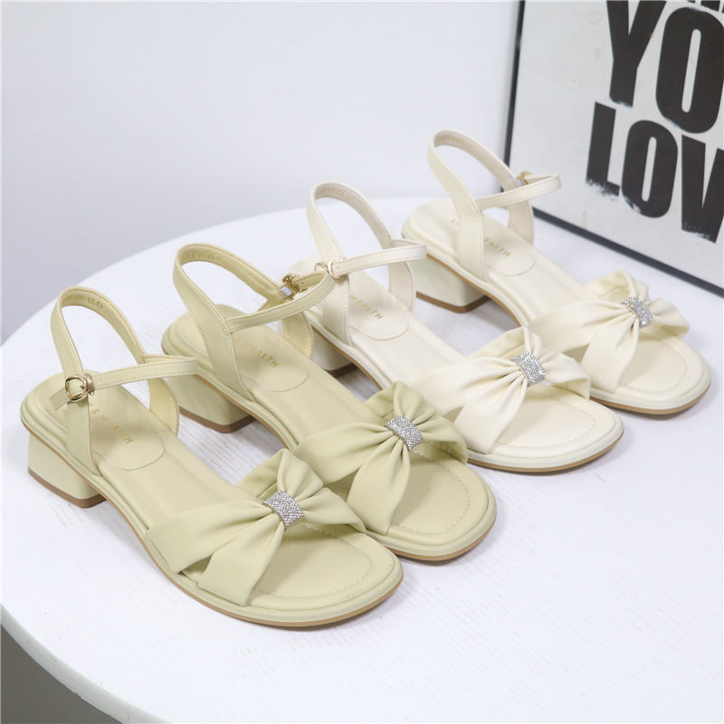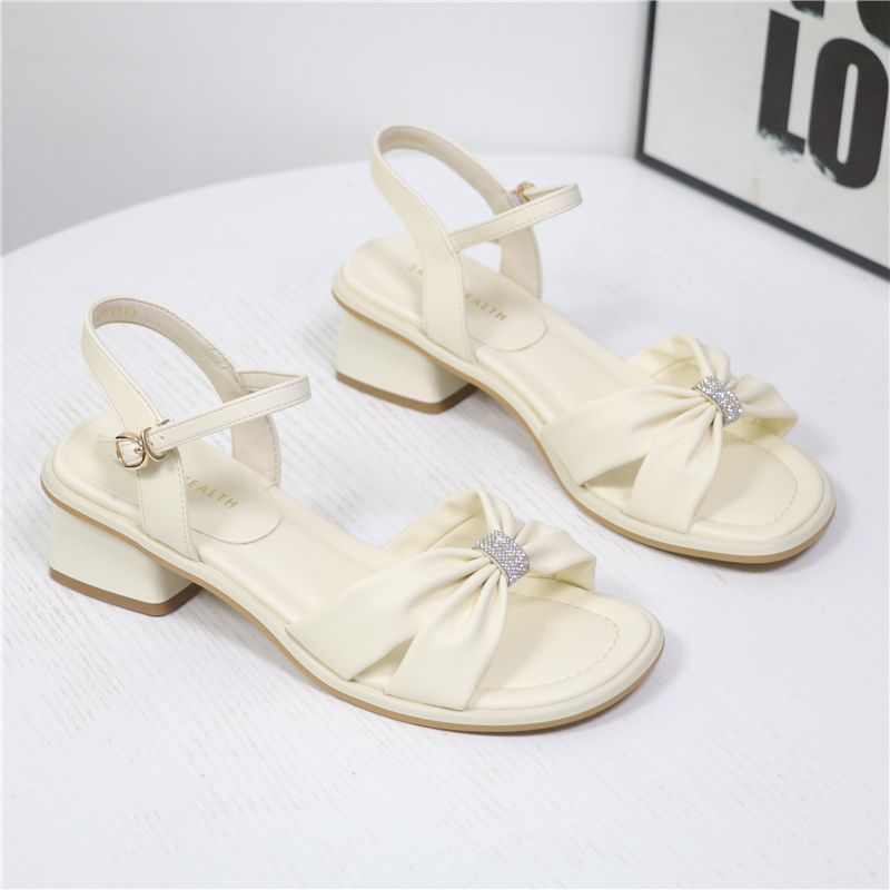 North Xinjiang Wolf Sandals Women’s Outer Wear Low Heel Summer New Style Dress with Thick Heel Soft Leather Open Toe Rhinestone Fairy