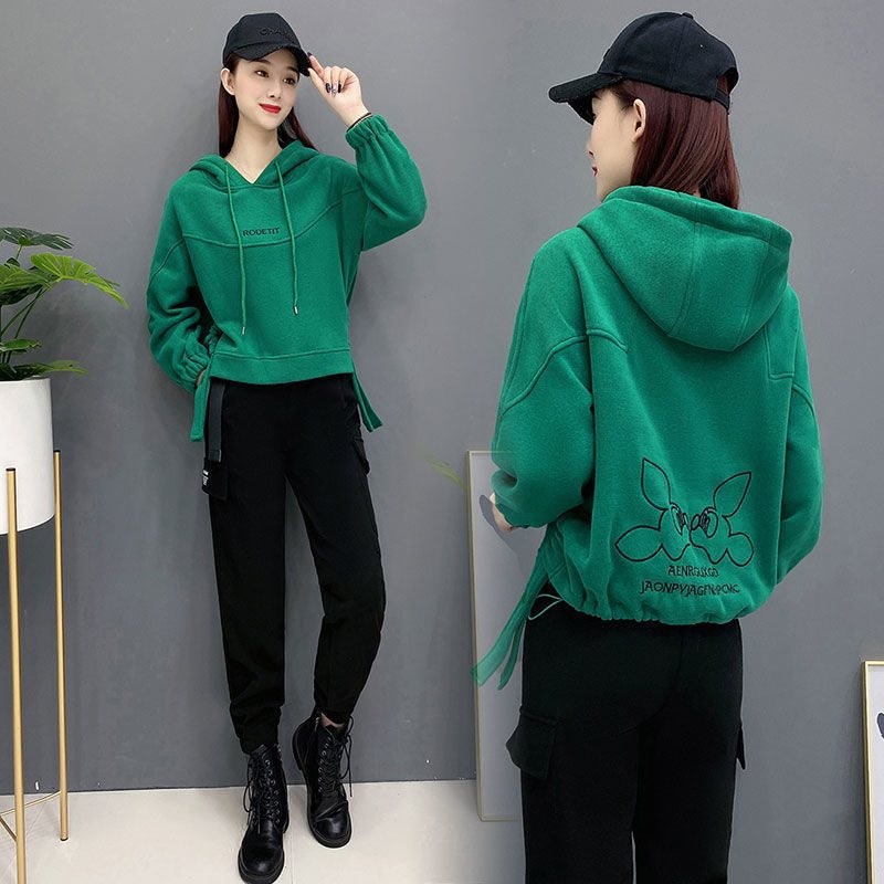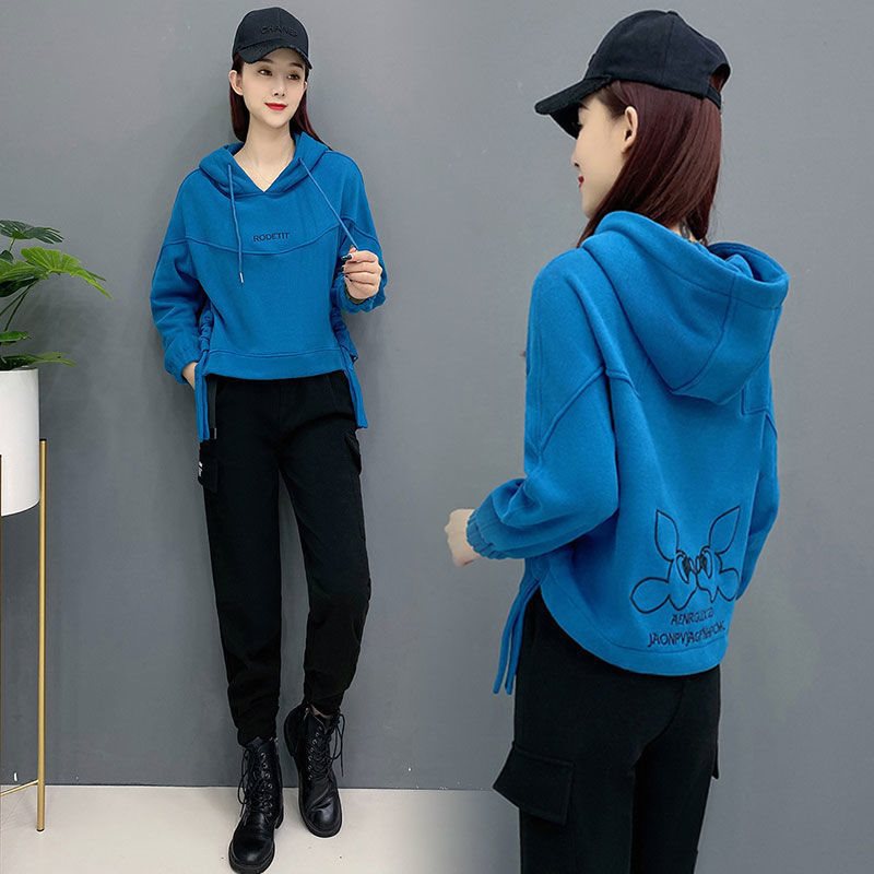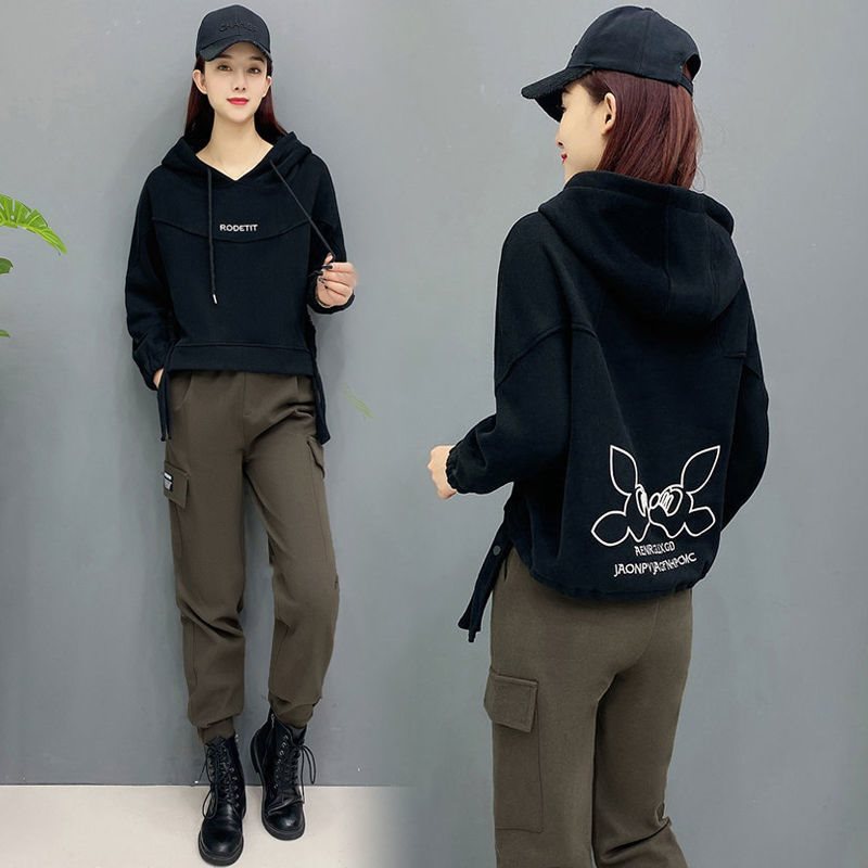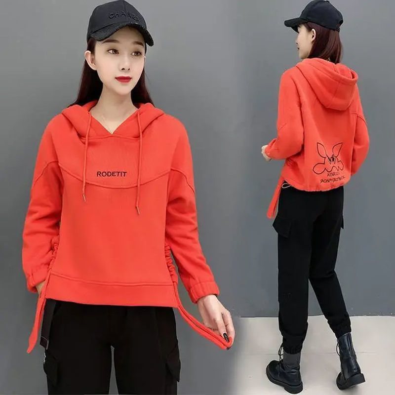 [not fleece-lined] net red little spring and autumn foreign style sweater female hooded top student Korean coat ins tide