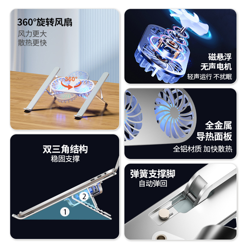 Notebook computer radiator bracket desktop heightening base adjustable aluminum alloy cooling fan silent bracket