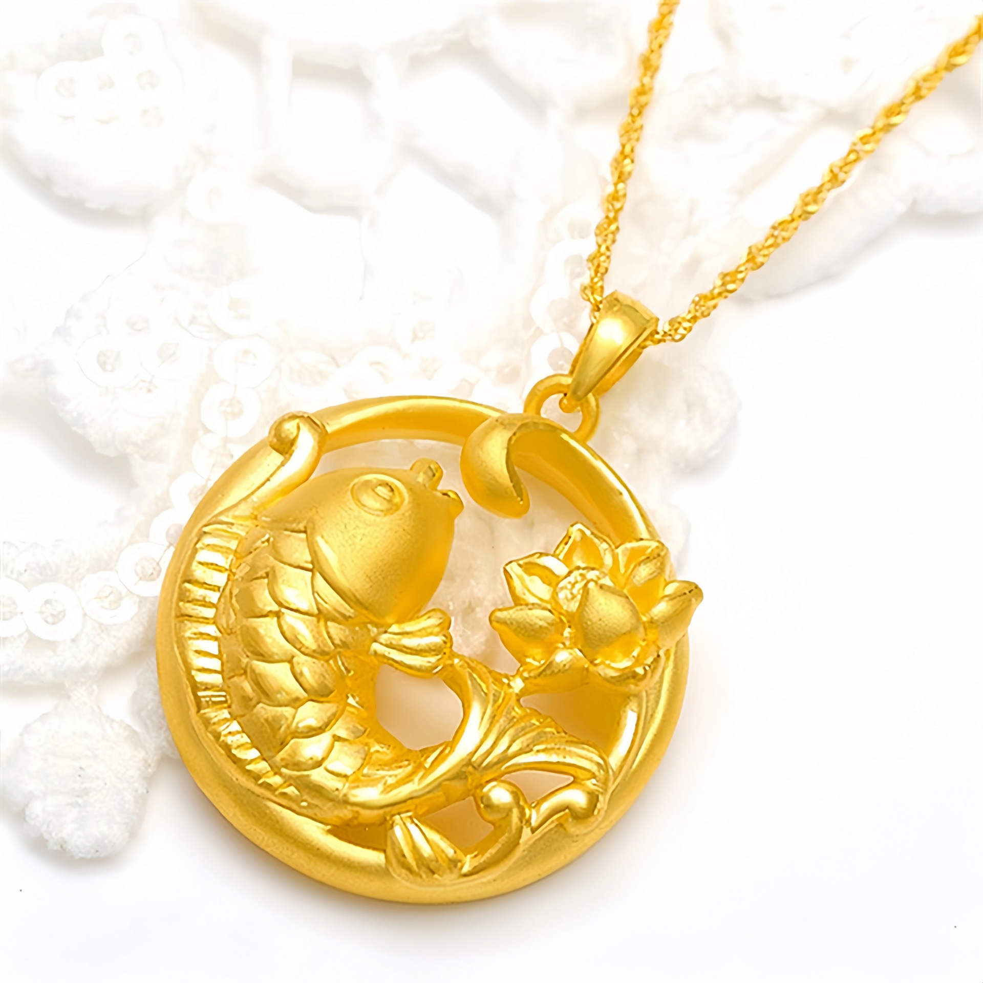 | nameOriginal | Novel Cute Lotus Fish Pendant Gold Plated Sandblasting Creative Lotus Koi Fish Play Lotus Pendant Necklace |