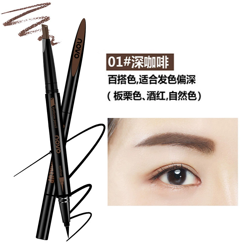 | nameOriginal | NOVO double-ended eye makeup pencil dark brown eyebrow pencil eyeliner black waterproof and sweat-proof non-smudged non-fading for beginners |