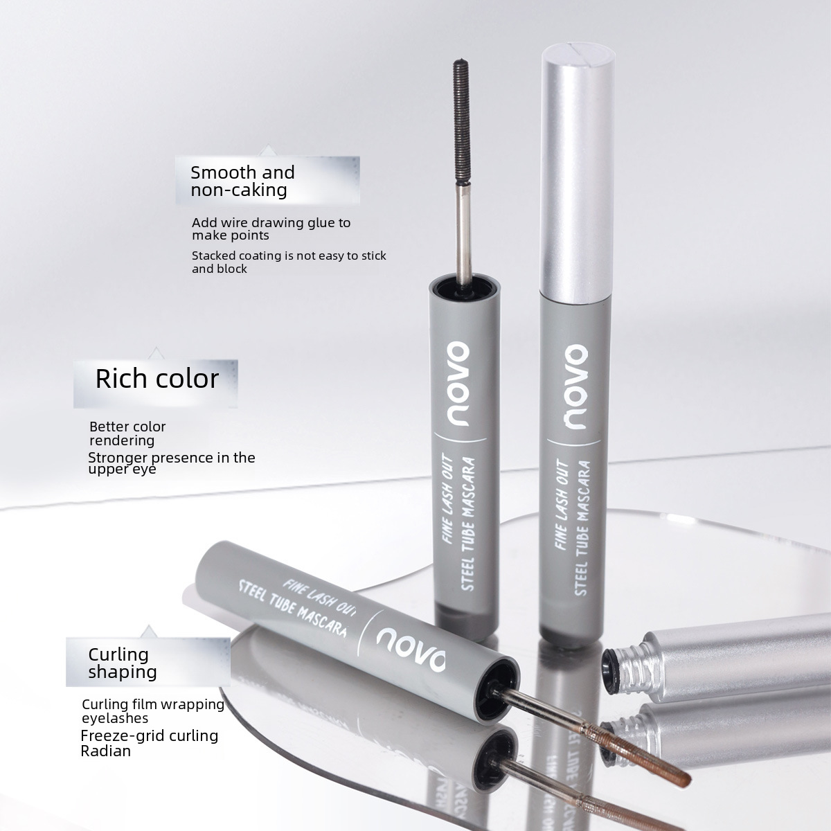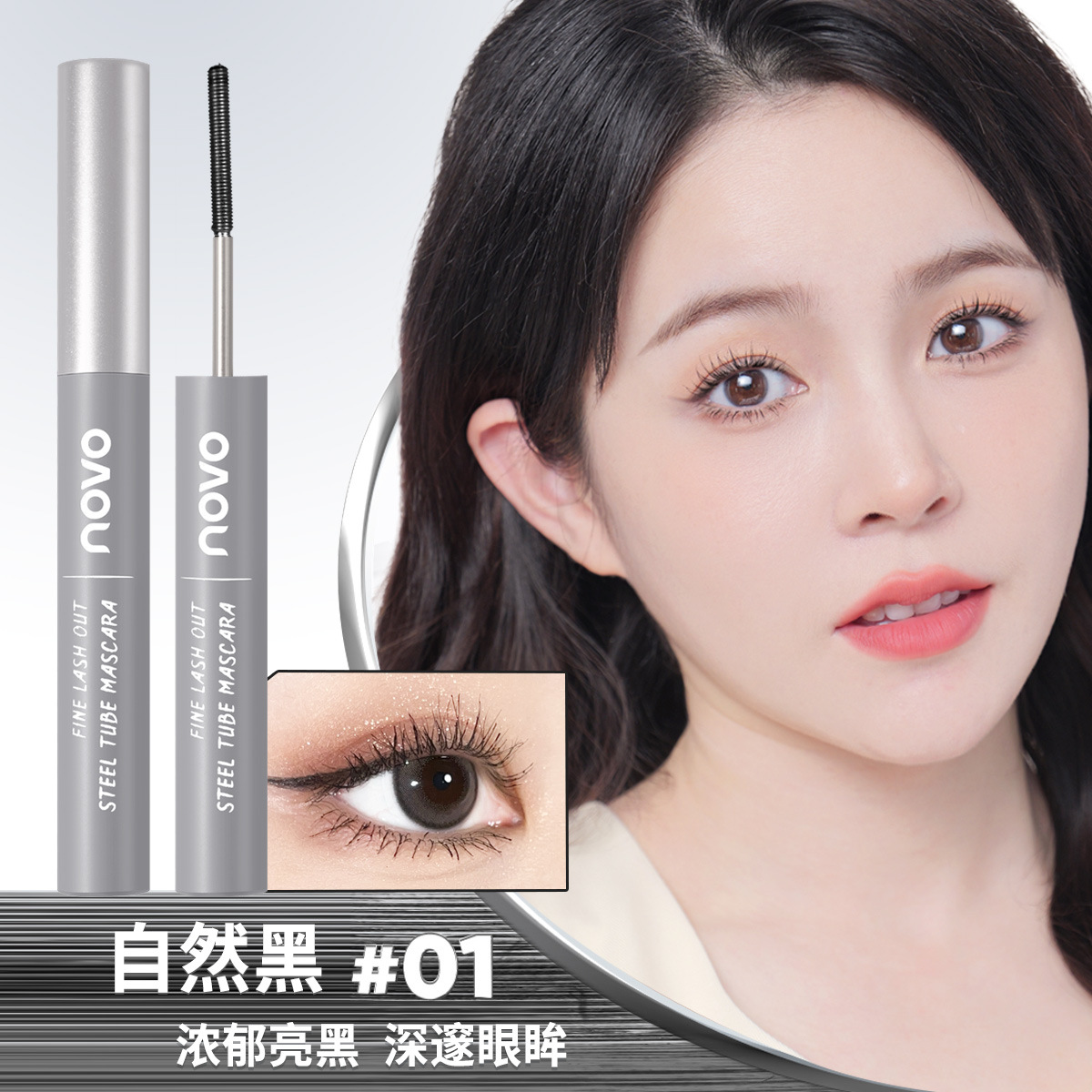 novo fine eyelashes outstanding steel tube mascara root root fiber smooth not easy to block and show off look white not easy to smudges students