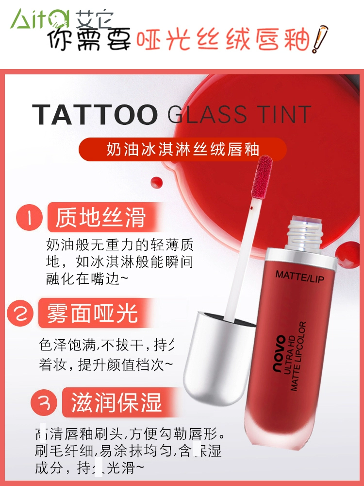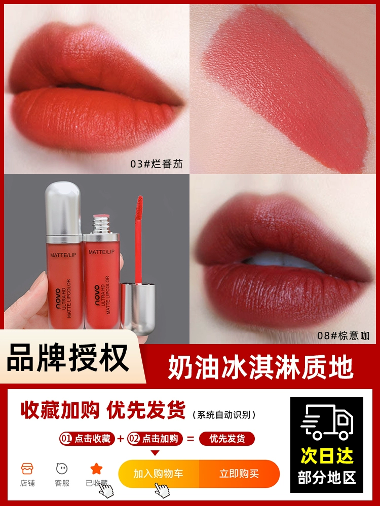 | nameOriginal | novo lip glaze matte matte non-fading milk tea color bean paste color niche brand lipstick lip mud affordable student model |