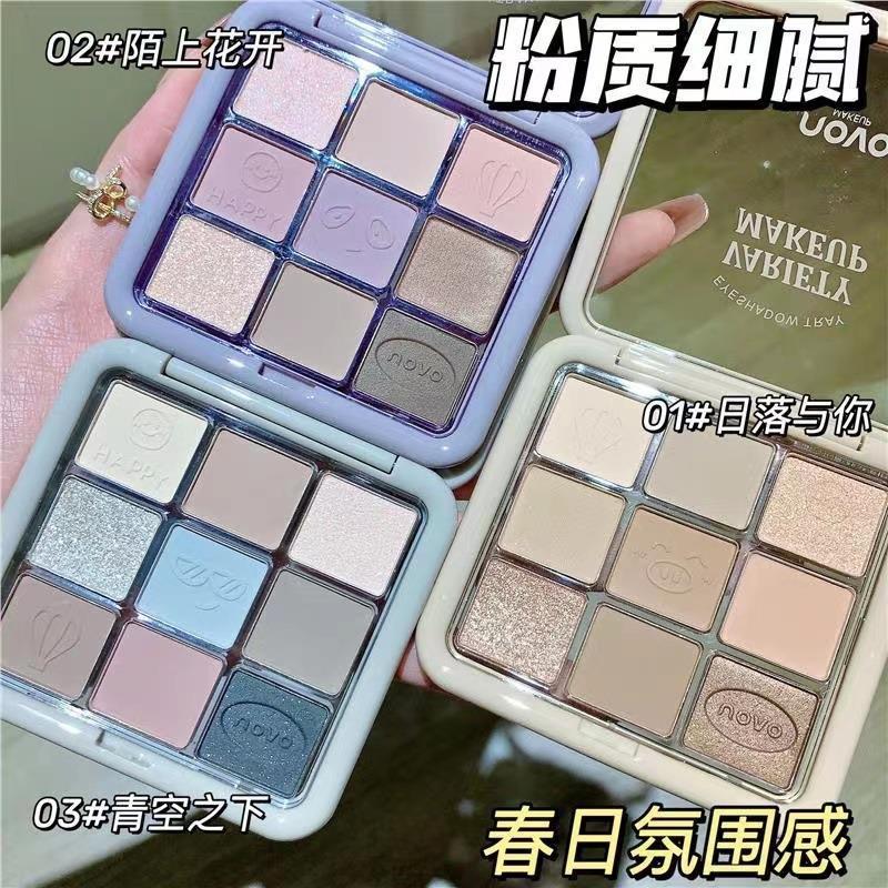 | nameOriginal | NOVO Nine-color Eyeshadow Plate Pearlescent Shiny Super Flash Matte Earth Color Student Party Parity Smoked Makeup Eyeshadow |