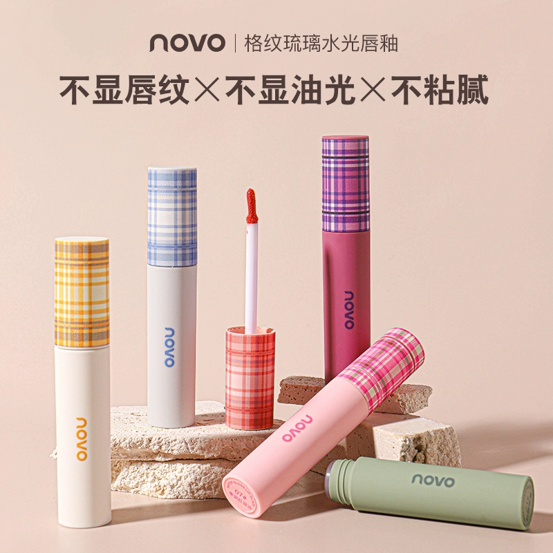 Novo Plaid Water Glossy Lip Glaze moisturizes and moisturizes mirror-like lips with long-lasting color official flagship store