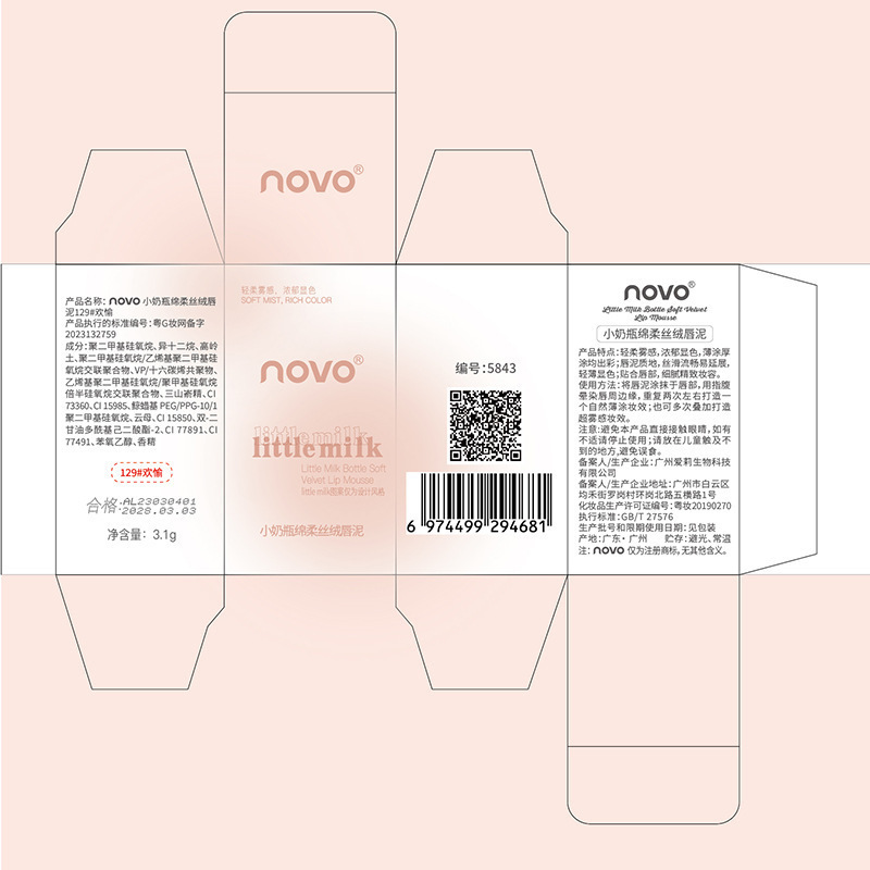 NOVO soft Velvet Lip mud matte matte lip glaze waterproof non-fading non-stick Cup student party lipstick female wholesale