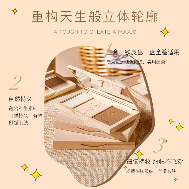 | nameOriginal | novo three-color ginger high-gloss contouring palette fine glitter face brightening glitter matte side shadow nose shadow beginner all-in-one palette |