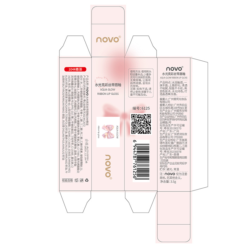 | nameOriginal | NOVO Waterlight Bright Color Ribbon Lip Glaze Waterlight Mirror Glass Lip Honey Waterproof Not Easy to Stick Cup Student Cheap Lipstick |