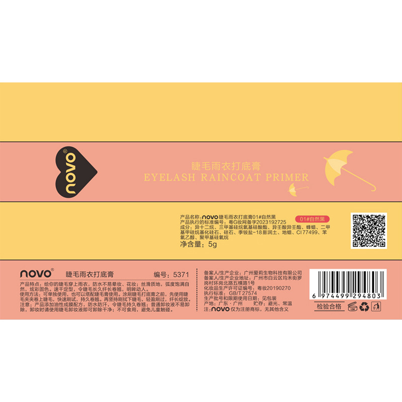 | nameOriginal | NOVO5371 eyelash raincoat base cream not easy to get dizzy makeup silky texture quick-drying shaping long curling |