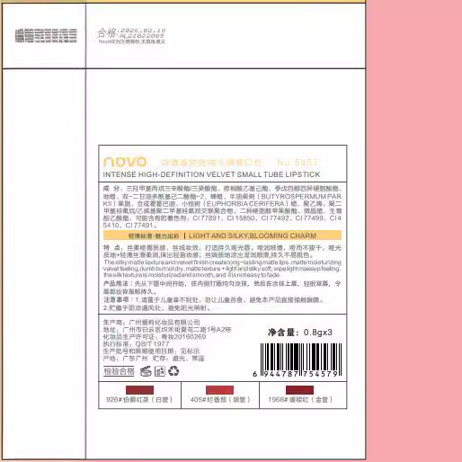 | nameOriginal | NOVO5457 deep love high-fixed velvet small thin tube lipstick |
