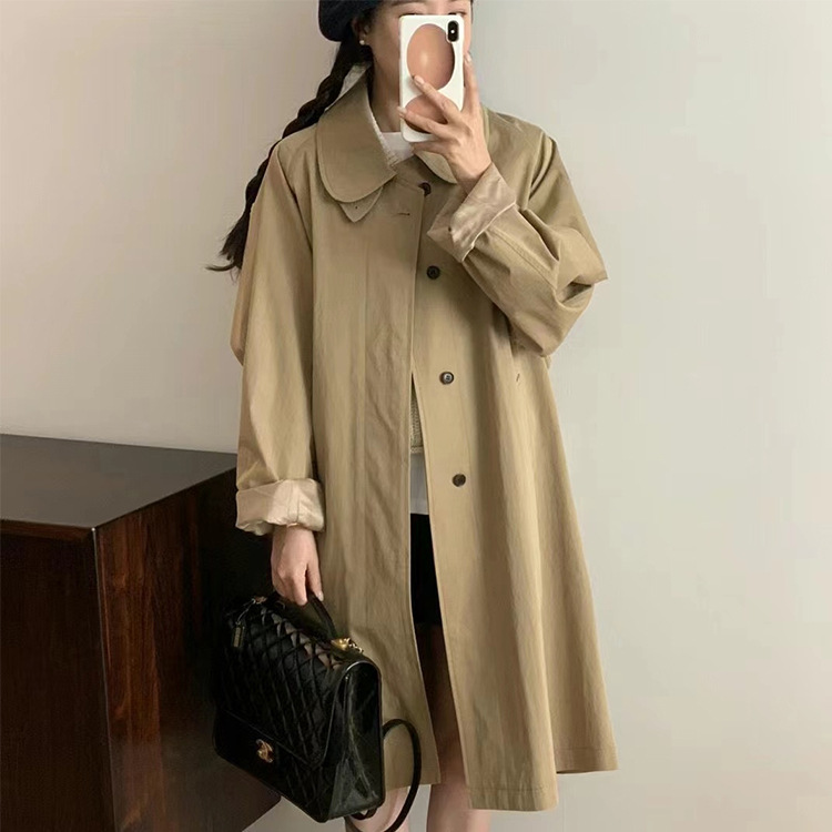 Now 2024 spring new South Korea Dongdaemun e * g loose lapel single-breasted A- line mid-length trench coat