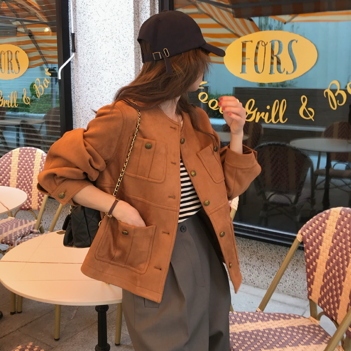 | nameOriginal | Now 2024 spring new South Korea Dongdaemun elegant suede leather jacket loose slimming round neck suede coat for women |