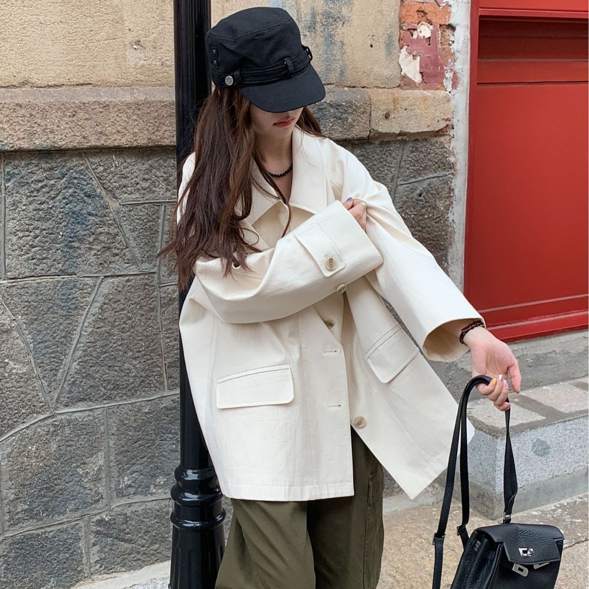 | nameOriginal | Now H 2023 Autumn New South Korea Dongdaemun casual solid color loose profile lapel single-breasted trench coat |