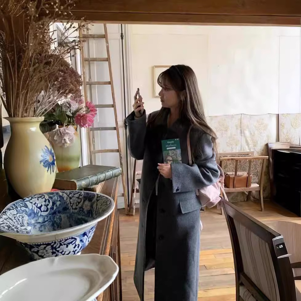 Now South Korea Dongdaemun designer Th * Bar **t slimming temperament two-color long coat