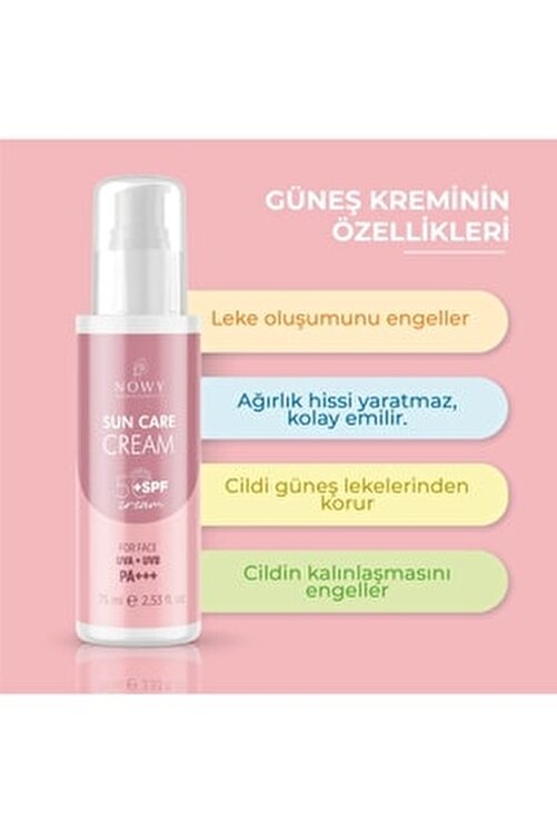 Rosa canina leaf extract rosehip plant Pisum satıvum sprout extract organic pea Olea europaea leaf extract olive leaf Rosmarinus officinal leaf extract rosemary oil Equisetum arvense extract horsetail grass Persea gratissima leaf extract avocado leaf extract Nıacınacınacınaj Amide (vitamin b3) is a special formula that equalizes the skin tone of Arbutin in the triplication of skin barrier Nowy spf 50+ sun care cream is designed in accordance with your face pH. It is a new generation care product with high protection against uvb and uva rays and includes broad-spectrum filters. It does not leave a feeling of white residue and stickiness on your skin. It protects the skin from sunspots and prevents the formation of stains. It is recommended to apply it at least 30 minutes before going out in the sun. Do not apply the product to parts that are too close to the eye. Store the product out of the reach of children. Note that the effectiveness of sunscreen creams depends on the amount of use andcorrect use of the product. It is necessary to implementreduce the amount, which will significantly reduce the level of protection. The amount of sunscreen product required for adult human body is 2 mg/cm2. This amount is equivalent to about 36 g (6 full full teaspoons).