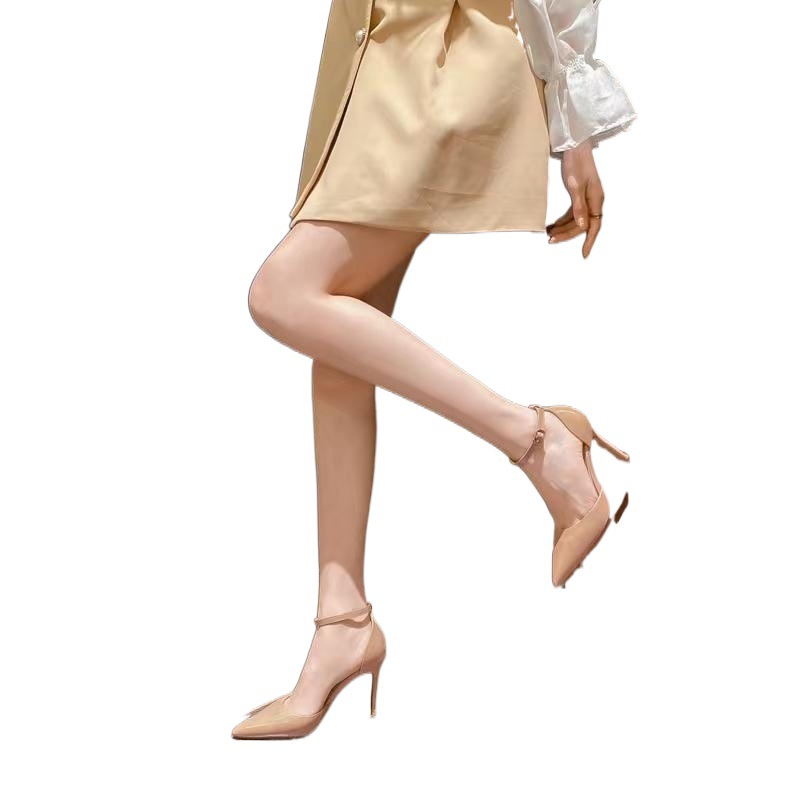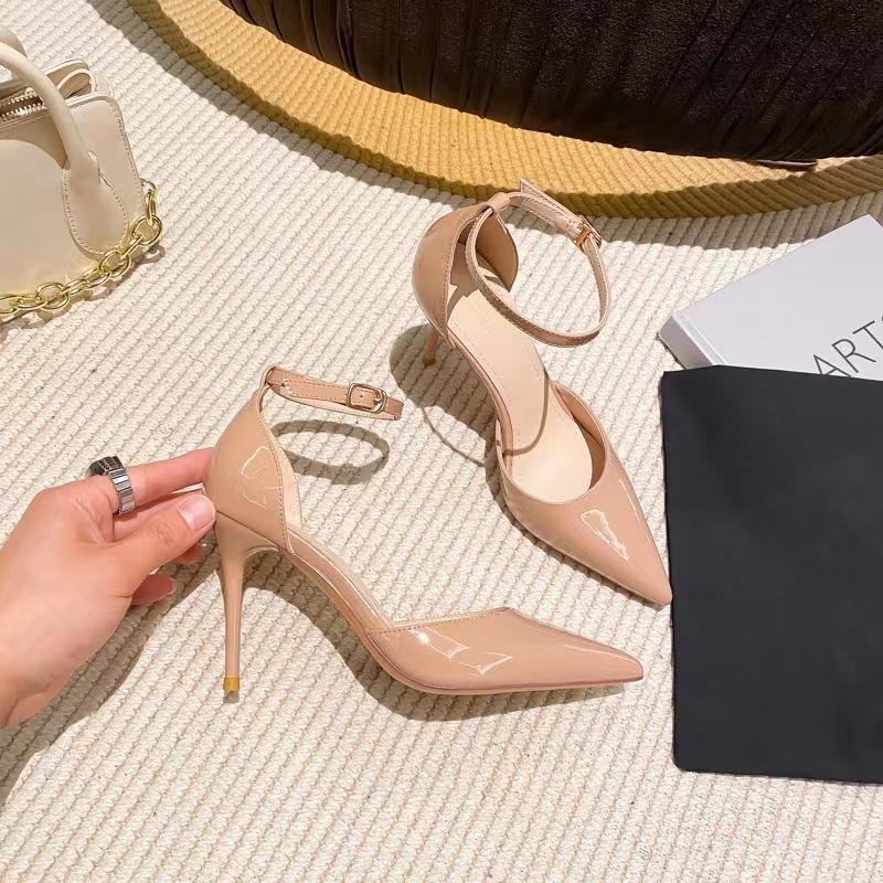 | nameOriginal | Nude color covered toe sandals women's mid heel 2024 new summer buckle strap hollow stiletto professional high heels shoes |