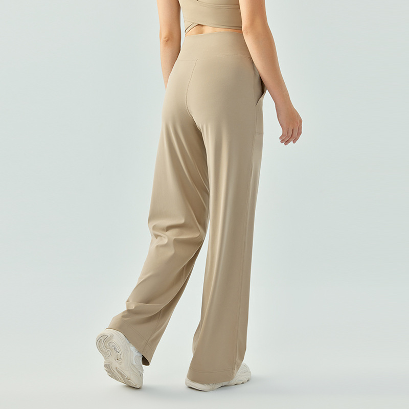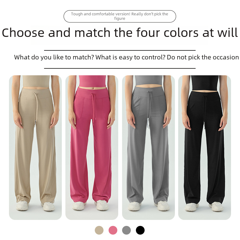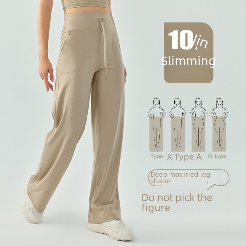 | nameOriginal | Nude high waist drawstring sports trousers women's loose wide leg solid color fitness trousers running slim slimming yoga pants |