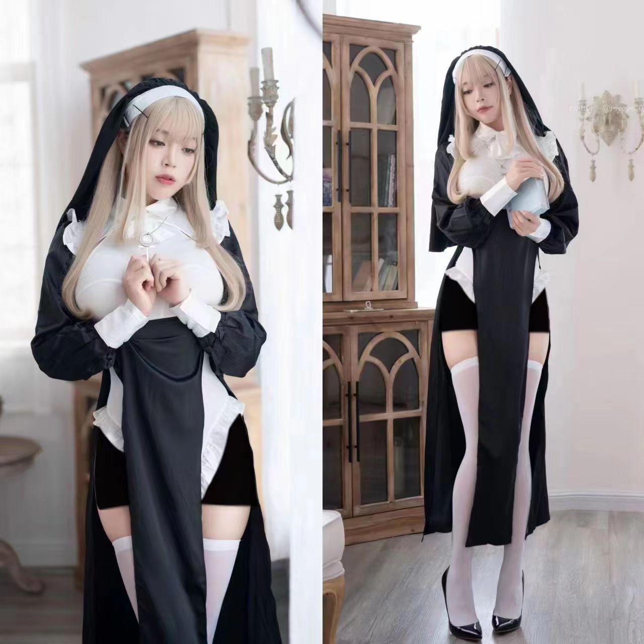 Nun cosplay sexy crossdress Halloween nun uniform cosplay costume