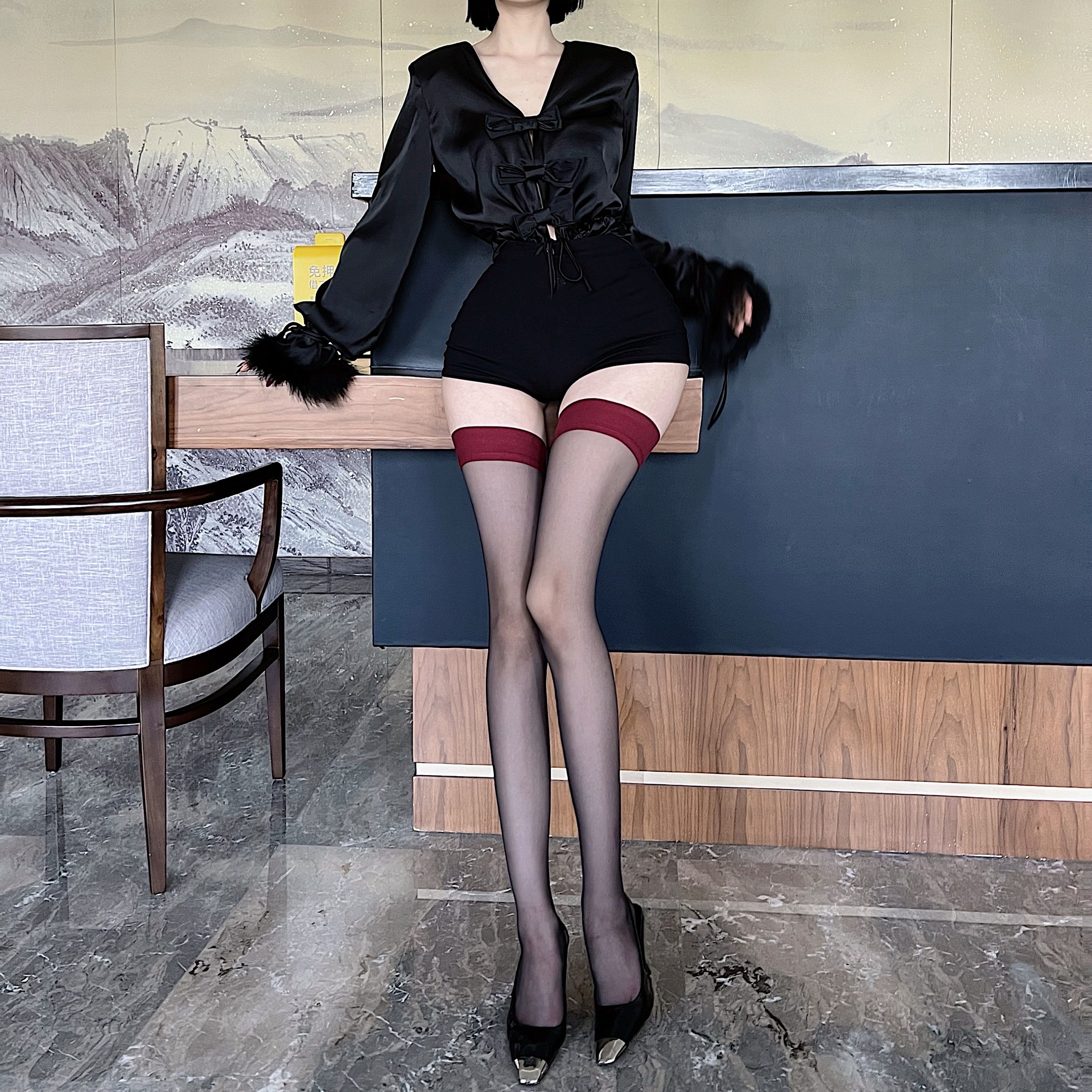 nunnally Sexy Red Silk Stockings Women's Over-the-knee Red Edge Black Silk Long Tube Pure Ultra-thin Silicone Net Stockings New Year's Socks