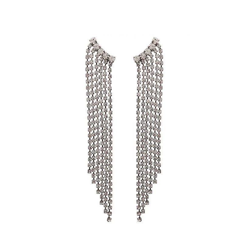 NUNU Hyuna's same style Park Chae-young, Kim Ye-rim, Jung Soo-yeon's CLC's same style personalized rhinestone tassel earrings and ear clips for women