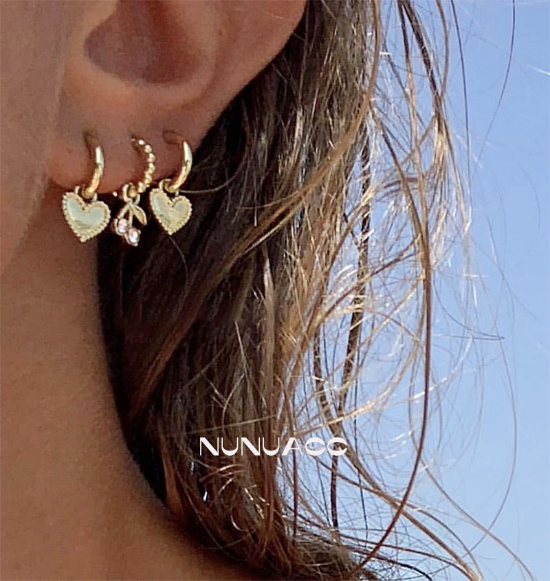 | nameOriginal | NUNU ins blogger's same style exquisite and versatile metal cherry love combination earrings and ear buckles for women without piercing ear clips |