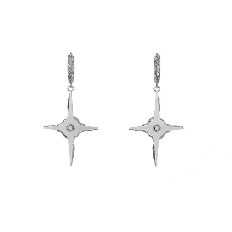 | nameOriginal | NUNU White Deer's same style four-pointed star cross earrings set with diamonds, high-end, personalized and versatile sweet and cool girl earrings |