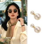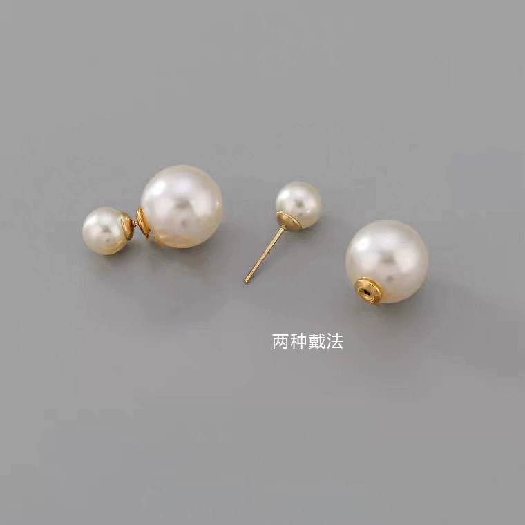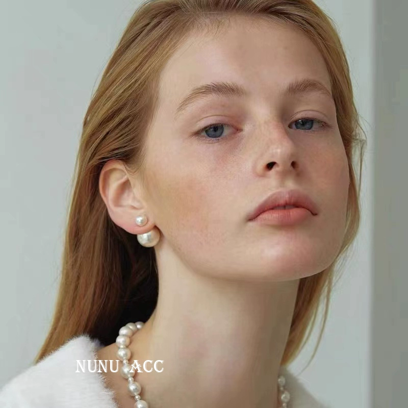 NUNU Yang Caiyu's same style pearl earrings French retro temperament ear stud size pearl front and back style two-wear ear clip