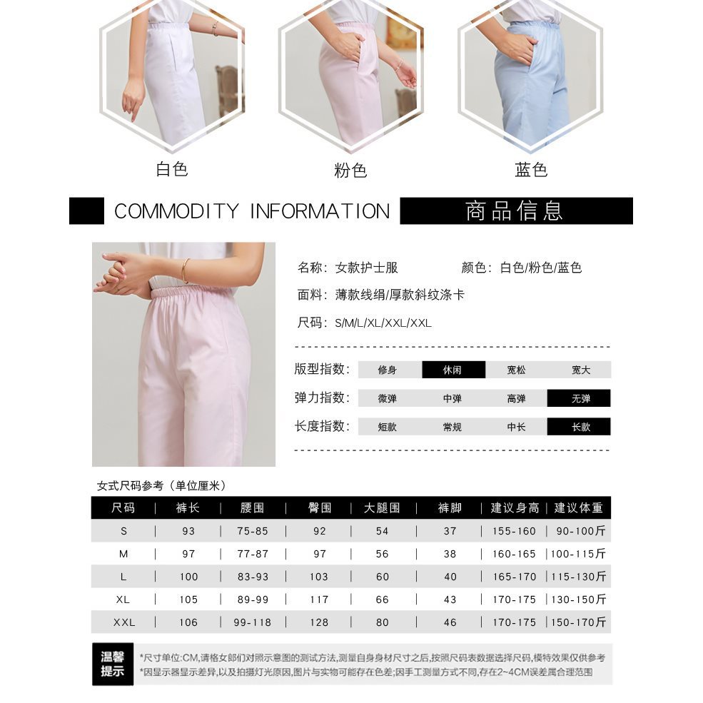 | nameOriginal | nurse pants elastic waist doctor pants women's white pregnant women's work pants thin elastic band plus size nurse clothing pink |