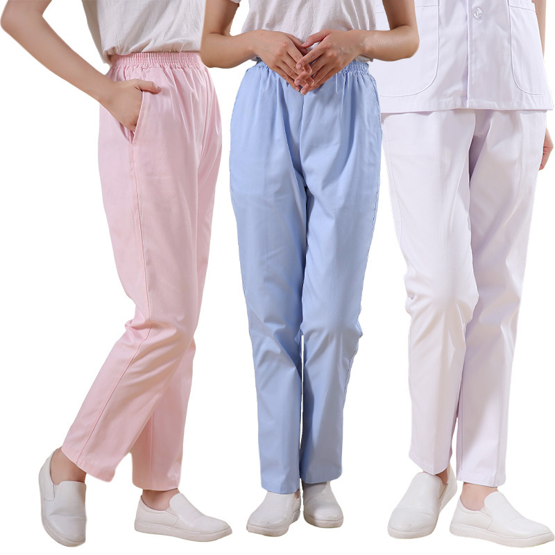 | nameOriginal | Nurse pants white summer pink blue elastic waist work pants nurse clothing plus size doctor pants full craft |