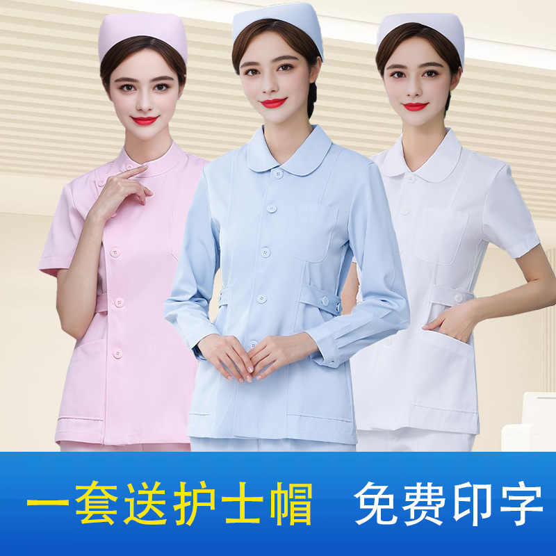Nurse’s Short-sleeved Women’s Summer Split suit Oral Dental Care Split Two-piece Printing Work Clothes White