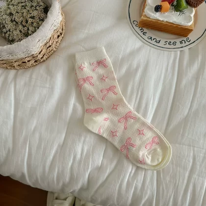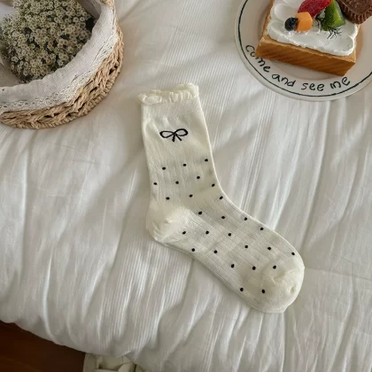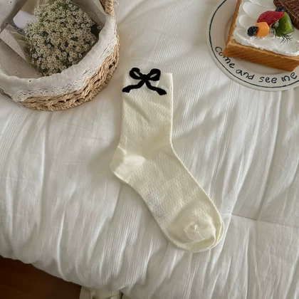 Nut Mommy rolled edge bow socks women’s mid-calf socks summer thin ballet style girl’s fungus edge stockings