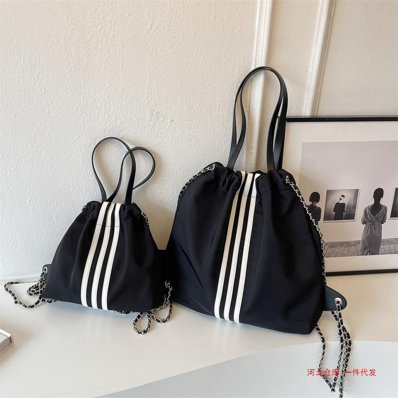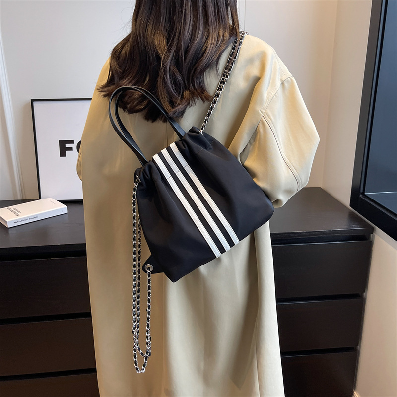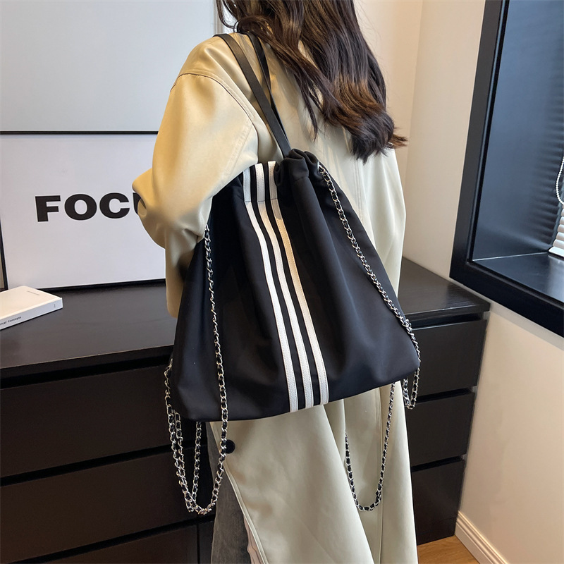 | nameOriginal | Nylon canvas chain backpack women's bag fashionable lightweight large capacity schoolbag handbag drawstring bucket bag |