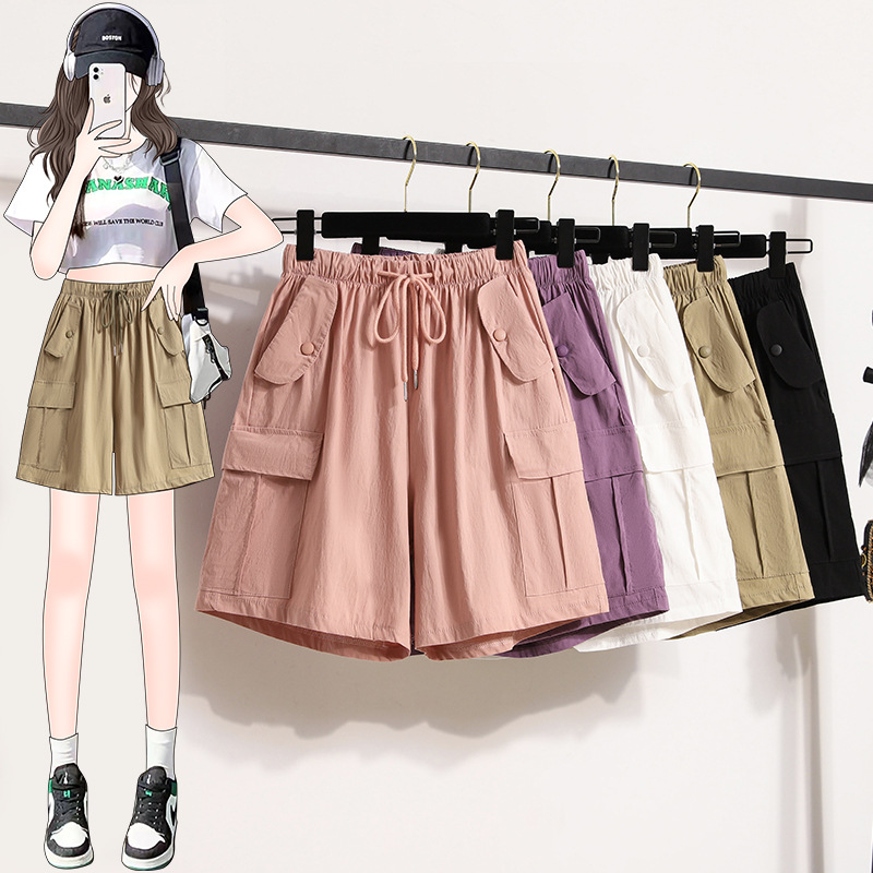 | nameOriginal | Nylon Stretch Tooling Shorts Women's Summer Thin Straight Casual Loose Pants Slimming Spice Girls Wide Leg Pants |