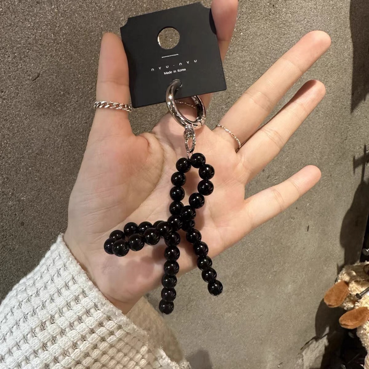 | nameOriginal | nyunyu black butterfly beaded bow key chain bag hanging mobile phone case chain diy cute creative |