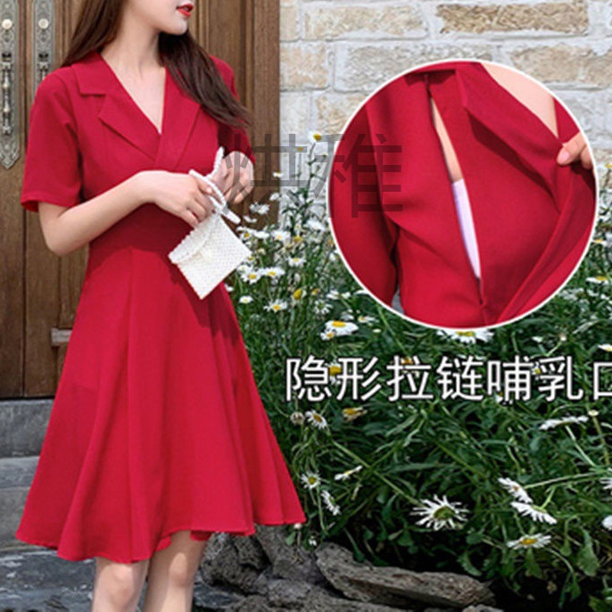 O ou 5 breast-feeding summer out fashion hot mom postpartum slimming breast-feeding period clothes red outer breast-feeding clothes