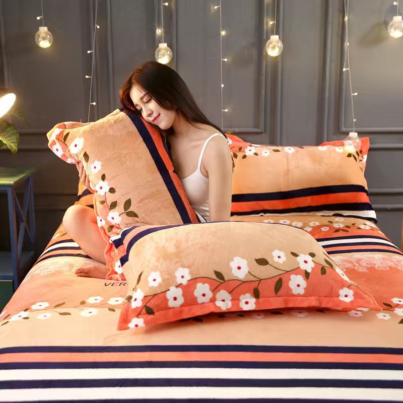 O1 pair of coral fleece thickened double-sided fleece pillowcase single double adult flannel winter warm pillowcase