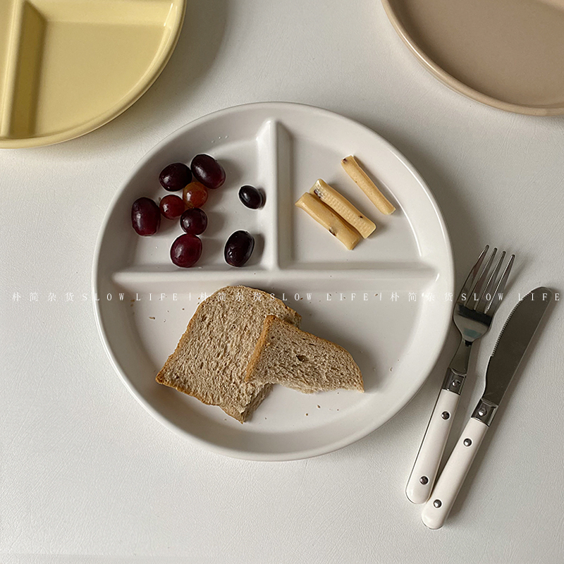 | nameOriginal | O1 Pu Jian groceries round grid matte ceramic plate breakfast plate snack plate children's plate 8436 relatives |